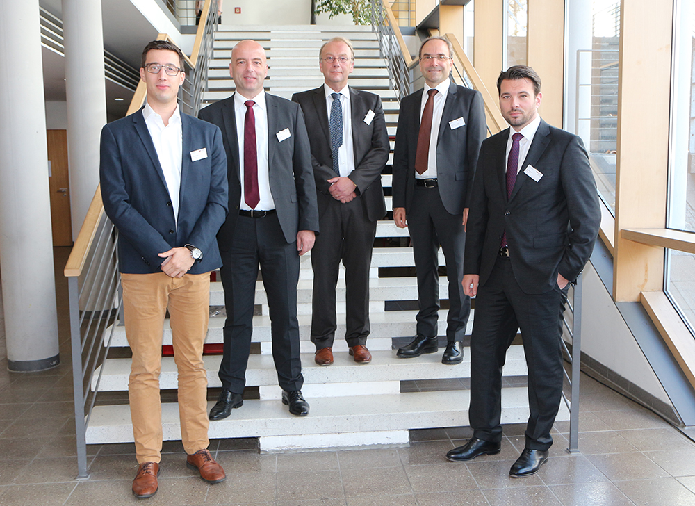 Prof. Dr. Marcus Vögtle, Studiengangsleiter BWL-Bank, gemeinsam mit den Referenten des Bankentags 2017.