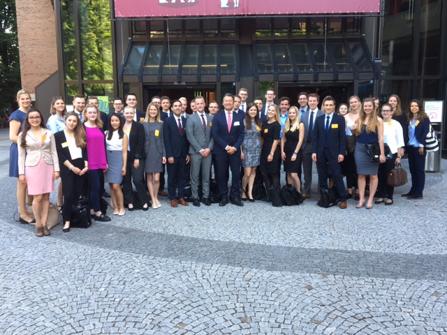 Rund 150 Studierende im vierten Semester der RSW-Studiengänge Steuern und Prüfungswesen sowie Wirtschaftsprüfung nahmen am Deutschen Steuerberaterkongress teil, der am 29. und 30. Mai in München stattfand. Begleitet wurden sie neben ihren Studiengangsleitern, Prof. Dr. Michael Scheel und Prof. Dr. Gunter Heeb, von Rektor Prof. Jürgen Werner sowie von Prof. Dr. Martina Corsten, Prof. Dr. Clemens Wangler, Prof. Dr. Wolfgang Hirschberger, Prof. Dr. Ludwig Bauer und Sabrina Kummer. Am Vorabend des Kongresses eröffnete ein gemeinsamer Grillabend das Rahmenprogramm, das mit dem Besuch des Relegationsspiels 1860 München gegen Jahn Regensburg am Ende des zweiten Kongresstages schloss. Die Fachtagung bot den Studierenden die Gelegenheit, schwerpunktabhängig an Arbeitskreisen zu verschiedenen Themengebieten teilzunehmen und Einblicke in aktuelle Entwicklungen im Bereich der Ertragsteuern, Erbschaftsteuer, Umsatzsteuer, Bilanzierung und im internationalen Steuerrecht zu gewinnen. Ein weiterer Schwerpunkt war das Thema Digitalisierung, das auch in der klassischen Steuerberaterkanzlei für tiefgreifende Veränderungen sorgen wird. Auf dem Kongress bekamen die Teilnehmer Anregungen für eine zukunftsfähige Kanzleiführung. Neben den steuerfachlichen Themenbereichen gab außerdem ein Vortrag zu den Veränderungen im politischen Amerika und dessen Folgen für Europa den Studierenden Denkanstöße für die Einordnung aktueller Steuer- und Wirtschaftspolitik in den globalen Kontext. Zu den Referenten zählten neben bedeutenden Persönlichkeiten des steuerberatenden Berufsstands und Vertretern der Finanzverwaltung auch hochrangige Vertreter der Judikative, wie der Präsident des Bundesfinanzhofs, Prof. Dr. h. c. Rudolf Mellinghoff. Auch von gesetzgeberischer Seite waren mit Bundesfinanzminister Dr. Wolfgang Schäuble und dem Bayerischen Staatsminister der Finanzen, Dr. Markus Söder, wichtige politische Entscheidungsträger vertreten, die sich für Fairness in der nationalen und internationalen Politik aussprachen und die Bühne des Münchner Gasteig für den Bundestagswahlkampf nutzten.