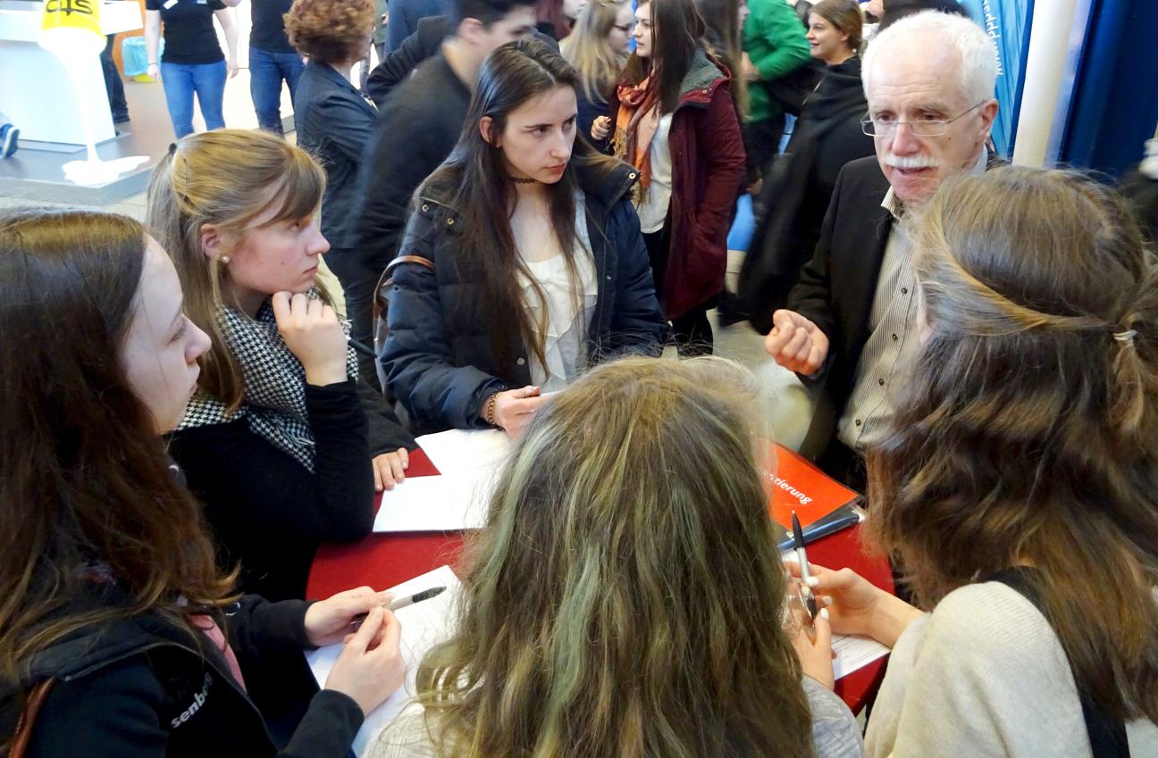 Am Messestand der DHBW Villingen-Schwenningen erhielten rund 100 Schülerinnen und Schüler einen Einblick in die Vorgehensweise einer Firmengründung. Im Speed-Dating-Verfahren durchliefen sie in 20 Minuten verschiedene Stationen, gründeten beispielhaft ihre eigene Firma und erfuhren dabei Wissenswertes über die verschiedenen Geschäftsbereiche Marketing, Finanzierung und Controlling. „Was muss ich bei einer Firmengründung beachten, wie spreche ich meine Zielgruppe am besten an und was ist überhaupt ein Businessplan?“ Diese und andere Fragen konnten im direkten Austausch mit Professorinnen und Professoren sowie Studierenden geklärt werden.