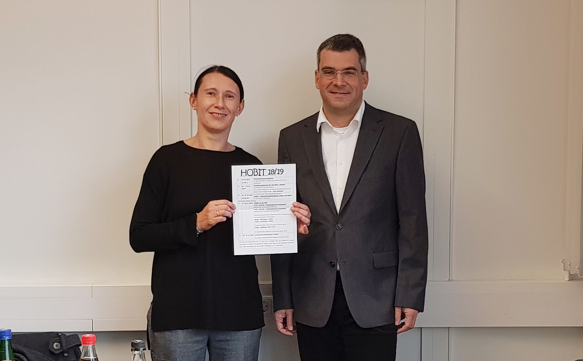 Bereits seit 10 Jahren finden an der Robert-Gerwig-Schule in Singen die Hochschul- und Berufsinformationstage (HOBIT) statt. Von Beginn an dabei ist Prof. Dr. Erich Klaus, der am 16.11.2018 im Rahmen der Initiative „Rent a Prof“ eine Gastvorlesung hielt und über die Studiengänge an der Fakultät Wirtschaft der DHBW Villingen-Schwenningen informierte (im Bild zusammen mit der Leiterin und Organisatorin des HOBIT Katalin Polgar). Tatkräftig unterstützt wurde er von den beiden Studierenden Lioba Drosdek und Larissa Graf, die den Schülern praktische Informationen aus dem studentischen Alltag an der Hochschule sowie im Dualen Partnerunternehmen vermitteln konnten. Als Ergebnis dieser erfolgreichen Partnerschaft kommen seit vielen Jahren Abiturienten der Robert-Gerwig-Schule für ihr Studium an die DHBW Villingen-Schwenningen.