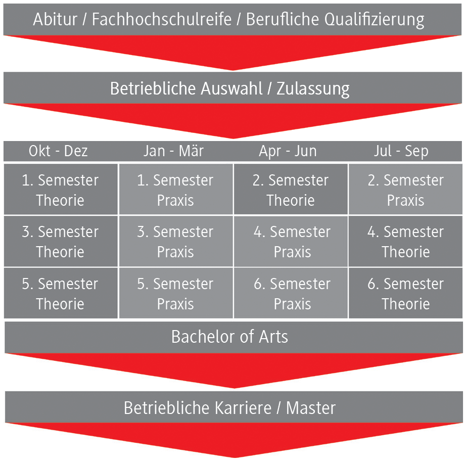 Welche unserer Dualen Partner Studienplätze zu vergeben haben, lässt sich über die Liste der freien Studienplätze rausfinden. In unserer Bewerberbörse haben Studieninteressierte außerdem die Möglichkeit ein Profil mit Lebenslauf, Interessensgebiete, Stärken und Schwächen anzulegen und nach dem Matching-Verfahren passgenaue Studienplätze und Duale Partner zu finden.